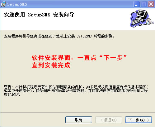 第二步,在这里填上短信平台的账号,确定后进入主界面